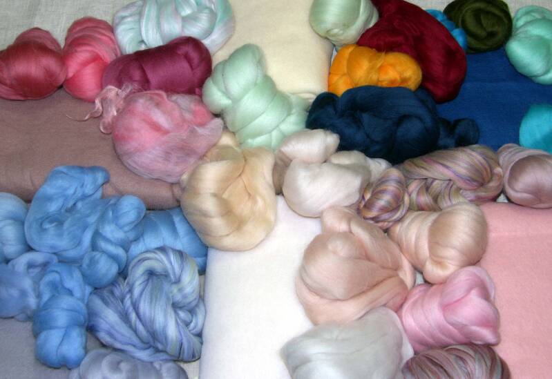 Of course, all this new fluff means that now I have to do some work. Adding the new delivery items into all the other fibre in my stash, I spent the next day sorting merino tops and pre-felts into colourways ready to be prepared for felt making and for spinning - taking over the living-room floor in the process. Stiff knees from crawling around, but so much fun!