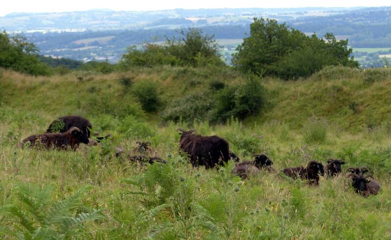 Hebridean sheep who are supposed to keep the vegetation down on the top of the hillfort - I think the grass and bracken was growing faster than they could eat it.